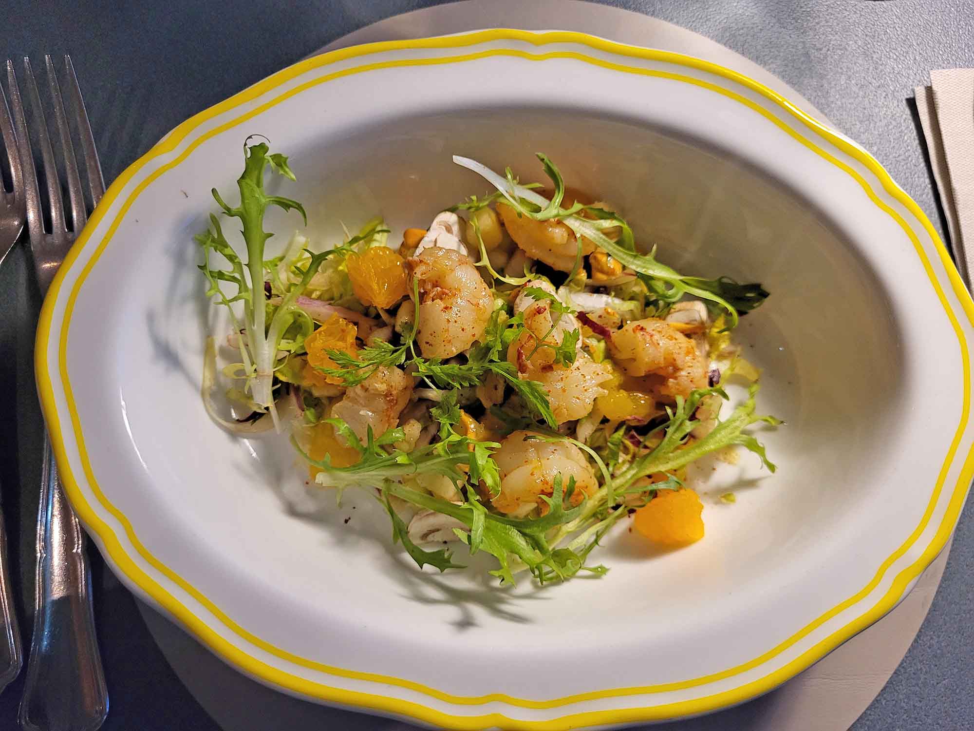 Der Abend begann mit einem Aperitif, der den Auftakt für das Menü bildete. Bereits hier zeigte sich, dass im Restaurant viel Wert auf eine passende Getränkebegleitung gelegt wird. Zu jedem Gang wurde eine speziell ausgewählte Weinbegleitung serviert, die auf die Aromen des jeweiligen Gerichts abgestimmt war.