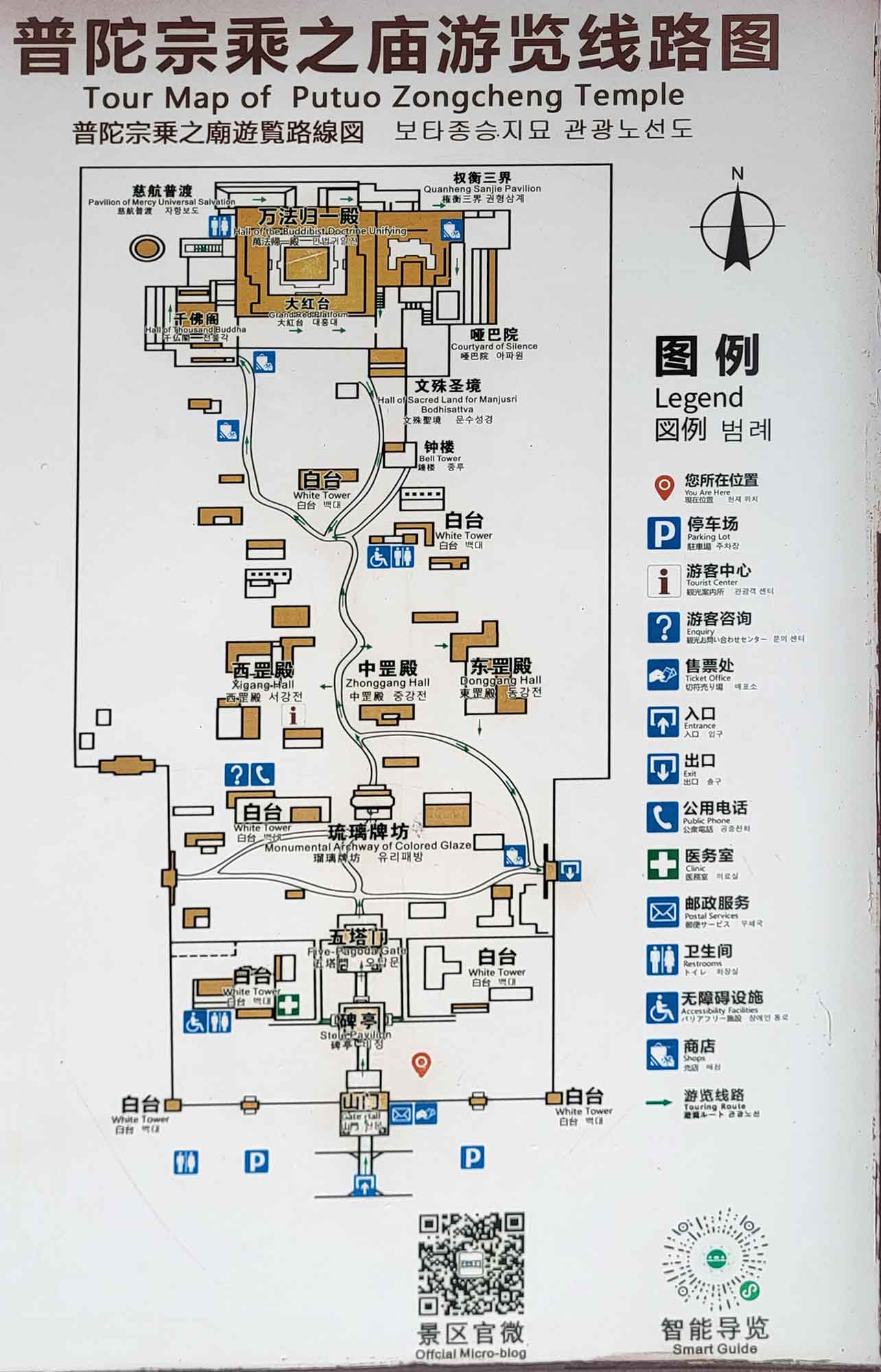 Schon beim ersten Blick auf den Orientierungsplan der Anlage wird die schiere Größe deutlich. Im Gegensatz zu den streng symmetrischen, horizontalen Palastanlagen Pekings folgt dieser Tempel der Topographie der Hügel. Er „klettert“ förmlich den Berg hinauf.
