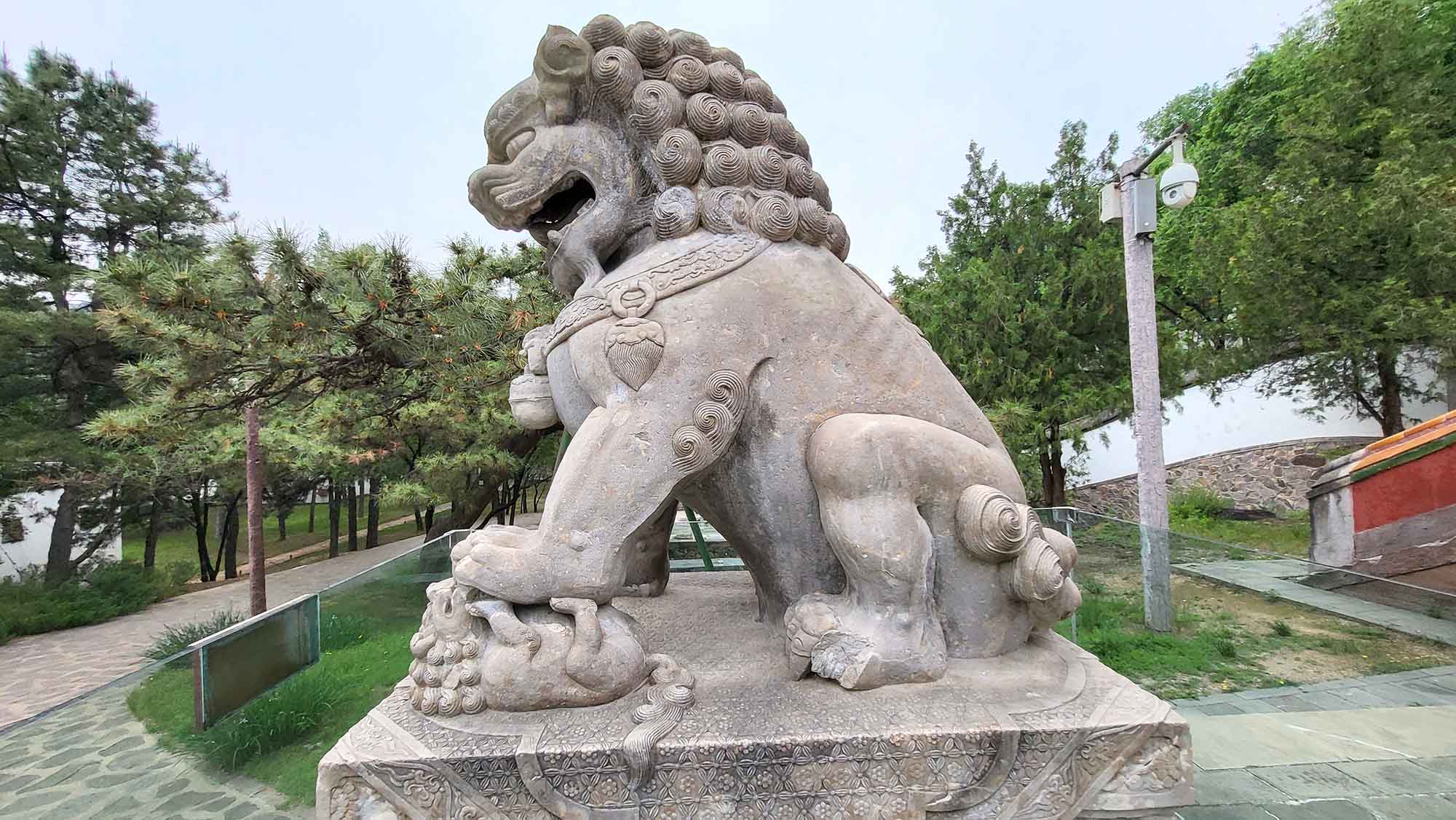 Der Detailreichtum dieser Skulpturen ist atemberaubend. Während der männliche Löwe mit seiner Tatze einen verzierten Seidenball hält – ein Symbol für die Einheit und Herrschaft über das Reich –, beschützt die Löwin ihr Junges. Diese Figuren sind nicht nur Dekoration; sie sind Wächter, die dem Besucher bereits am Eingang die Macht und Beständigkeit der kaiserlichen Ordnung vor Augen führen sollen. Man sollte sich hier Zeit nehmen, die feinen Locken der Mähne und die kraftvolle Mimik der Tiere zu studieren. Es ist Steinmetzkunst auf höchstem Niveau, die seit über 250 Jahren Wind und Wetter trotzt.