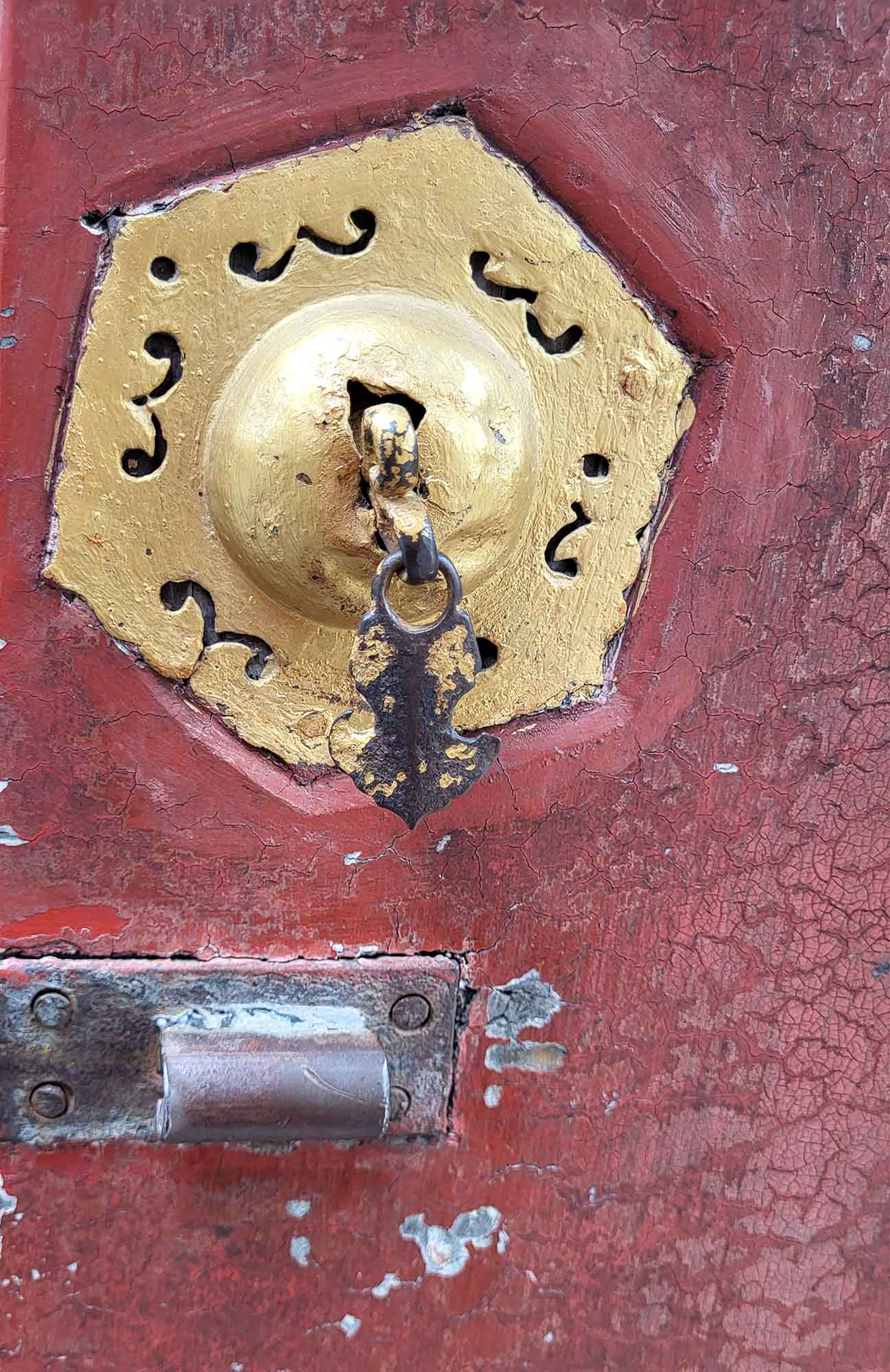 Achte beim Besch auf die Details, die oft übersehen werden. In den Winkeln des Tempels finden sich unzählige Motive, die von der Zeit gezeichnet sind. Ein verrosteter Türriegel auf rissigem, rotem Lack erzählt viel über die Beständigkeit dieses Ortes. Diese Spuren der Patina verleihen dem Tempel eine tiefe Authentizität. Es ist kein „neu aufgebautes“ Denkmal, wie man es oft in anderen Teilen Chinas sieht, sondern ein Ort, der seine Geschichte offen trägt.
