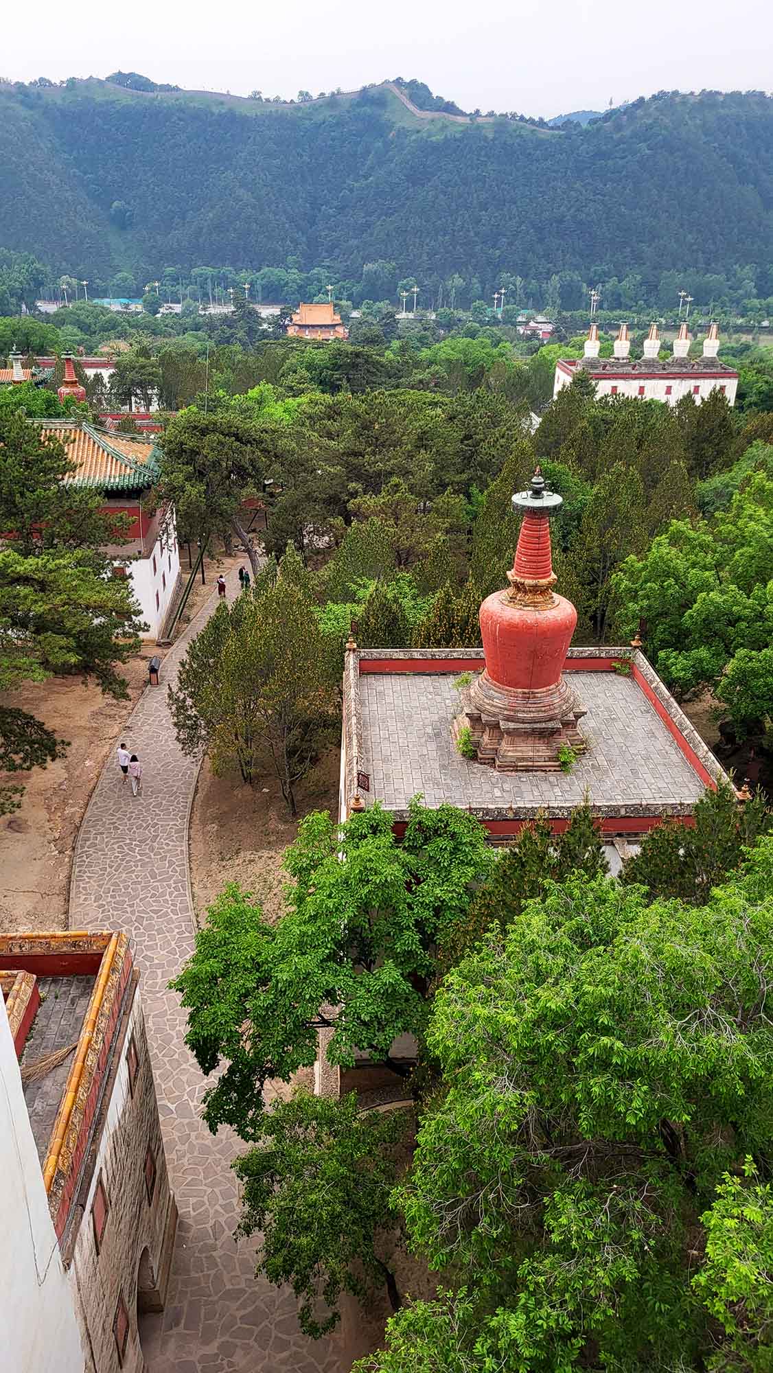 Schon von Weitem wirkt der Putuo Zongcheng Tempel wie eine Festung. Massive, weiß-rote Mauern steigen terrassenförmig den Hang hinauf, goldene Dächer glänzen über den Innenhöfen, und zwischen den Gebäuden öffnen sich immer wieder überraschende Blickachsen in die grüne Hügellandschaft rund um Chengde. Wer diesen Ort betritt, spürt sofort: Hier ging es nie nur um Religion – sondern auch um Macht, Symbolik und Inszenierung.