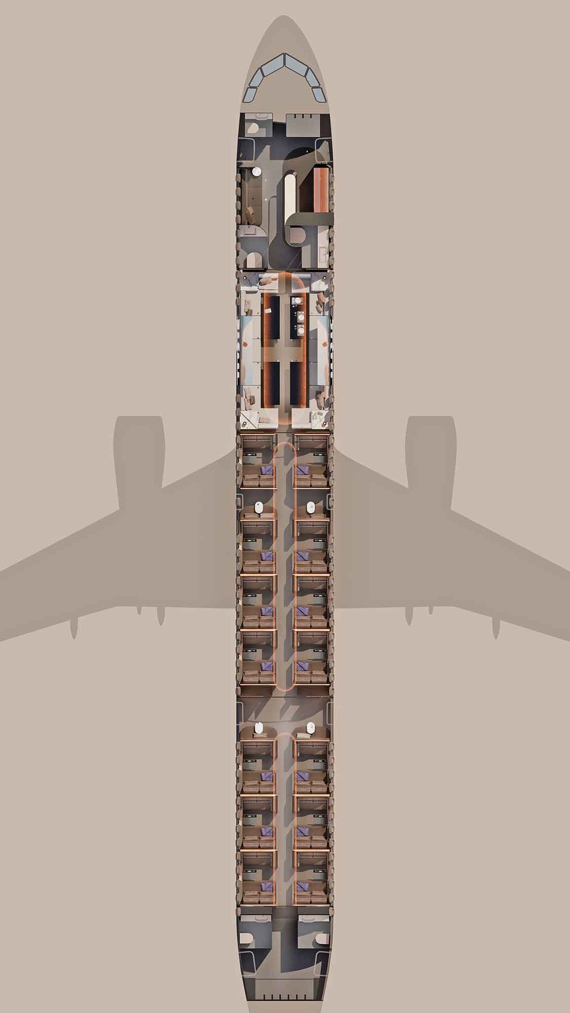 Das Kabinendesign gliedert sich in mehrere charakteristische Zonen:
